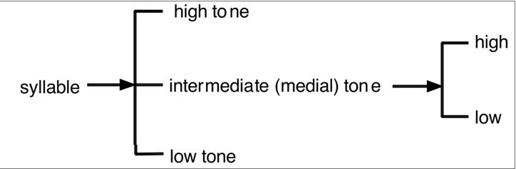 Ọ̀kọ is a tone language. There are three principal tones in Ọ̀kọ: (`) low tone; (´) high and between these is an unmarked medial tone. It is also possible to distinguish two levels of the medial.